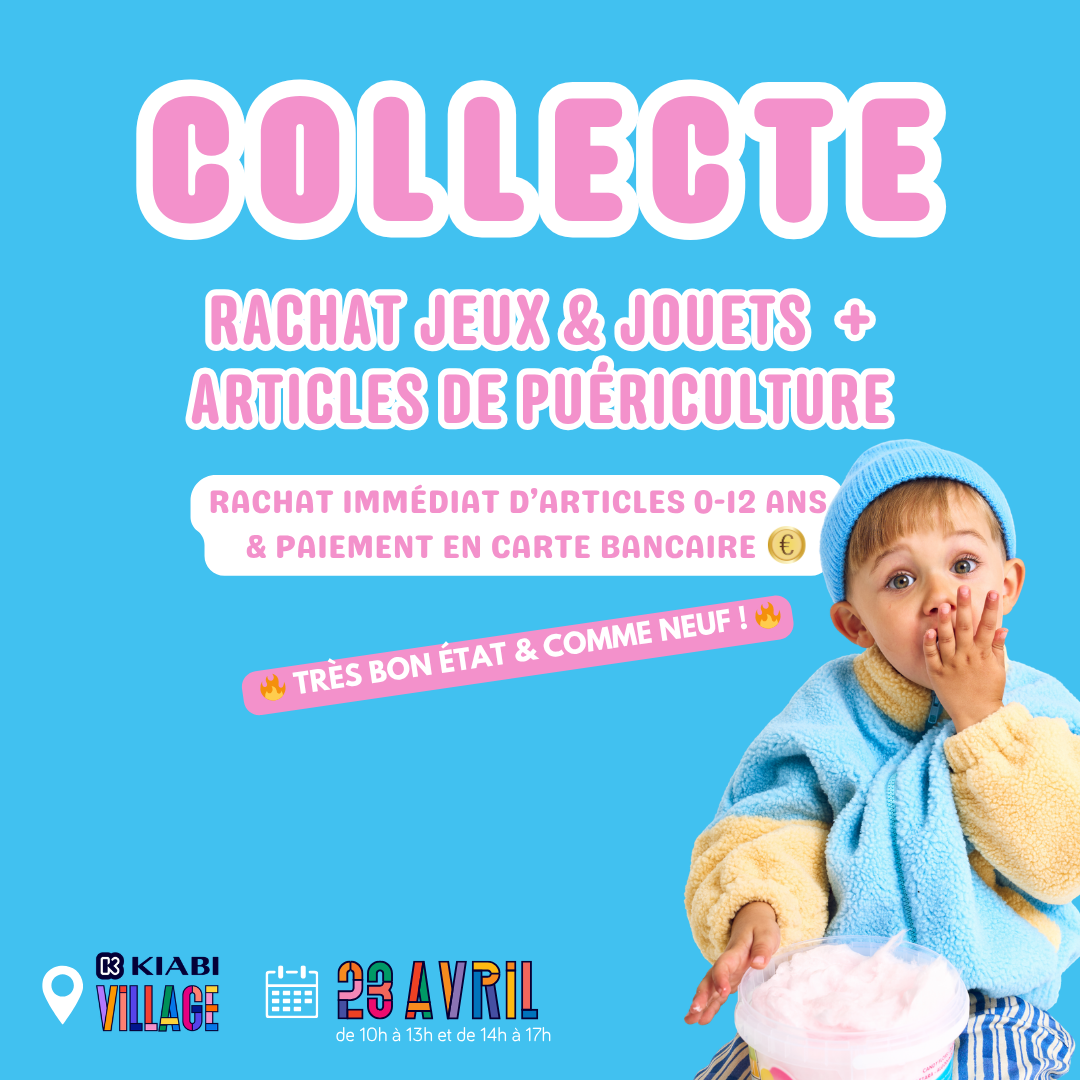 Passez nous voir sans réservation sur nos stands de collecte Kidkanaï : apportez jusqu’à 30 articles et repartez avec un paiement immédiat sur votre compte bancaire 💰